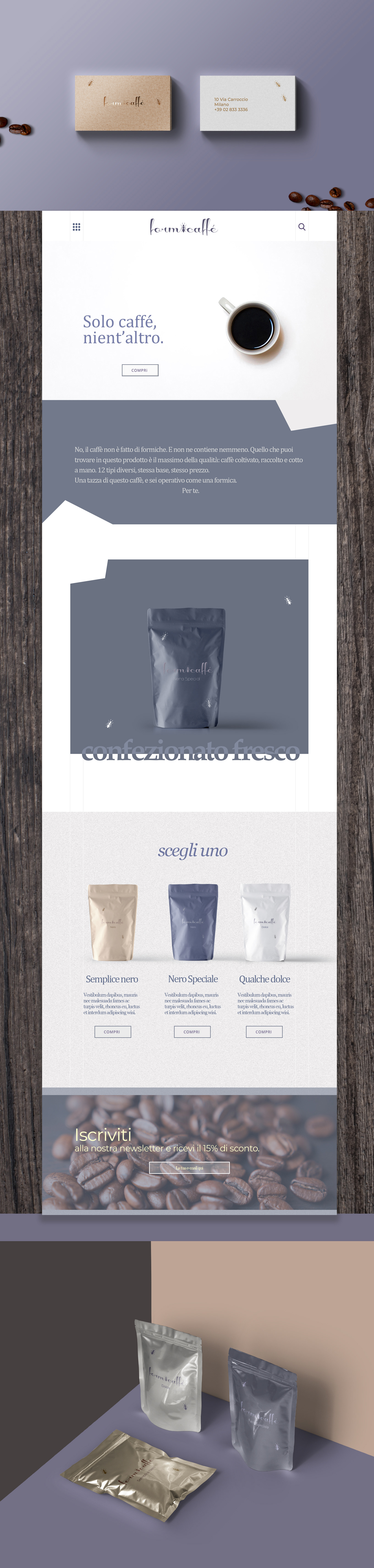 website, packaging, logo and papers for italian coffee brand